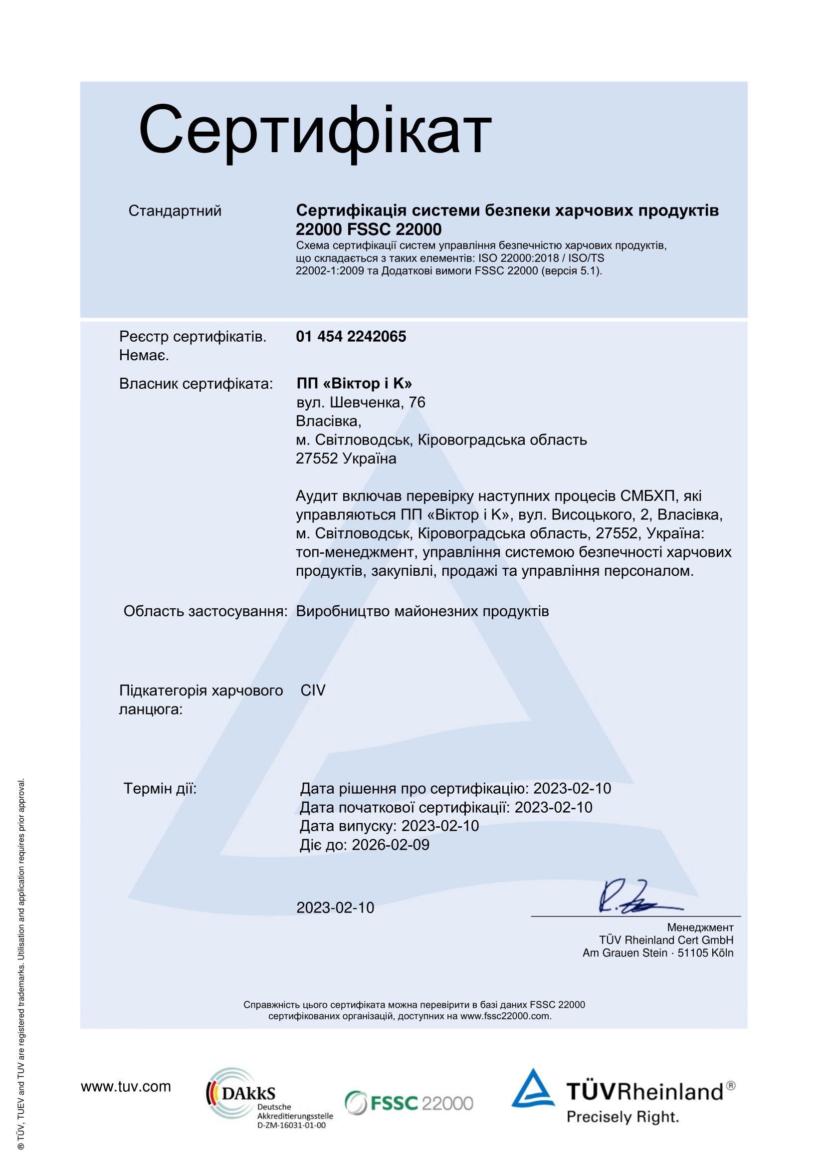 - Зареєстрована торгова марка «Королівський смак», під якою виготовляється продукція підприємства «Віктор і К».