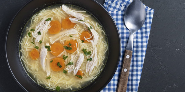 Суп з курки та рисових макаронів